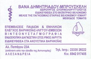 Δημητριάδου Μπρουσκέλη Βάνα: Ωτορινολαρυγγολόγος - Βελονίστρια
