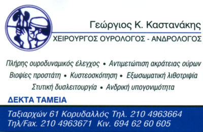 Κυστεοσκόπηση - Εξωσωματική λιθοτριψία - Στυτική δυσλειτουργία - Ανδρική υπογονιμότητα